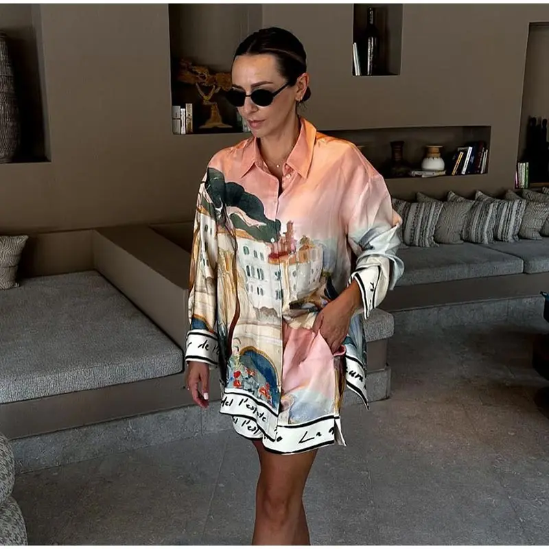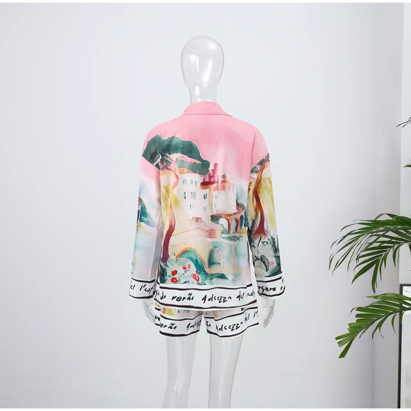 1.Artistic Print Design:Showcases a unique and artistic print with picturesque scenes, adding an elegant and distinctive touch to your outfit.